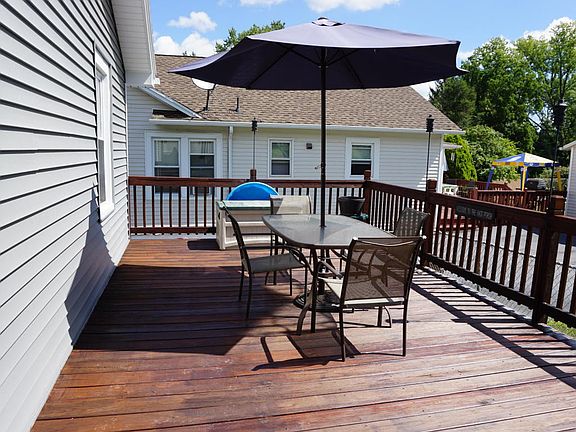You will see pride in ownership throughout this beautifully remodeled & charming ranch. The LR currently has newer carpet but underneath is a nice bonus with hardwood floors. The Eat-In Kitchen includes a tile backsplash, tile floor, & granite counter-tops. Appliances Included. Spacious Deck. Paved Driveway & Garage. Keep cool in the summer with Central Air. Dry basement. Home Warranty too!