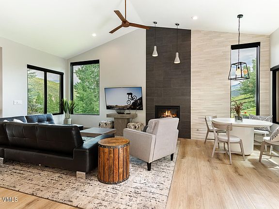 Enjoy south facing views of Arrowhead ski mountain from this custom remodeled four-bedroom duplex home on one of Singletrees premier cul-de-sac roads. Redesigned to emphasize a seamless indoor/outdoor living experience, the main living area features an 8.5-foot sliding accordion window door that opens onto a spacious deck with multiple seating areas, beautifully manicured landscaping and direct lawn access that is all fenced in. Large picturesque main living area windows frame the south facing ski mountain views and provide an abundance of natural light into the open main living area that features vaulted ceilings, a stunning Island dry-stack stone living room ascent wall and a chef's kitchen complete with custom cabinets, Carrera Grigio quartz countertops and a custom metal and wood table top. The primary suite, residing on the top level with the 4th bedroom or an impressive private office, features vaulted ceilings, a custom built-in closet system and an exquisite bathroom with Caesarstone quartz countertop, custom lighting and a spacious wet-tub/shower. There is a secondary bedroom on the main living area and the lowest level features a large secondary bedroom with private bathroom, a game/gear storage room and two entrances into the 2-car garage. Walk to the Sonnenalp Club or Harvest restaurant or jump on the bike to enjoy the numerous paths and trails within the Singletree neighborhood. There are also a handful of community neighborhood parks along with a community center and fitness facility for Singletree owner use. A quick five-minute drive will put you at the base of the Arrowhead ski area or within the heart of Riverwalk to enjoy all of the shops and restaurants. This home is being listed as unfurnished but the furniture is negotiable. New DaVinci select shake composite roof(Tahoe color) to be installed by the seller in the coming weeks. http://www.50FillyDrive.com/?mls