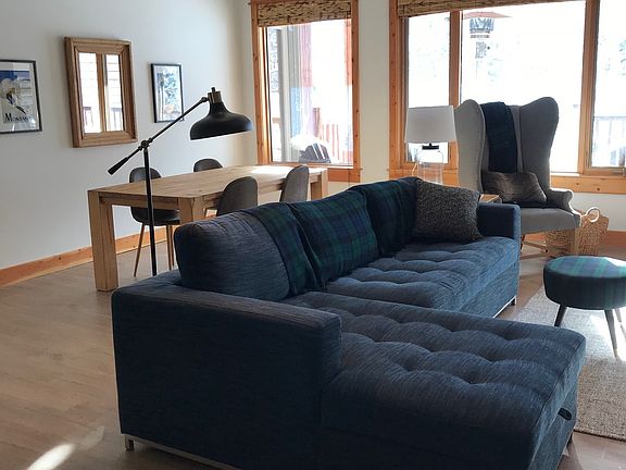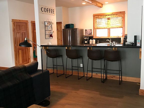 Newly remodeled, ski-in/ski-out 2 bedroom condo in the peaceful Lone Moose Condos. Enjoy skiing big sky with a practically private lift feet from your front door or a relaxing space in close proximity to Yellowstone National Park. Easy access with a 5 minute drive to Big Sky main lift or town center. Enjoy this serene setting with all Montana has to offer, skiing, sledding, hiking and biking just a step outside! The condo is uniquely private, with a ski lift (lone moose) just feet from the front door. The setting is quiet with nature at your back door, but close to all the restaurants, grocery stores, breweries and other activities. 2 car tandem garage. Master Bedroom: King bed Guest Room: Queen bed and twin bunk beds Common space: Queen Sofa Bed Amenities Property amenities Access to hiking / biking trails directly from condos Cats Allowed Dryer Elevator Fitness Room Flooring: Hardwood Furnished Garage