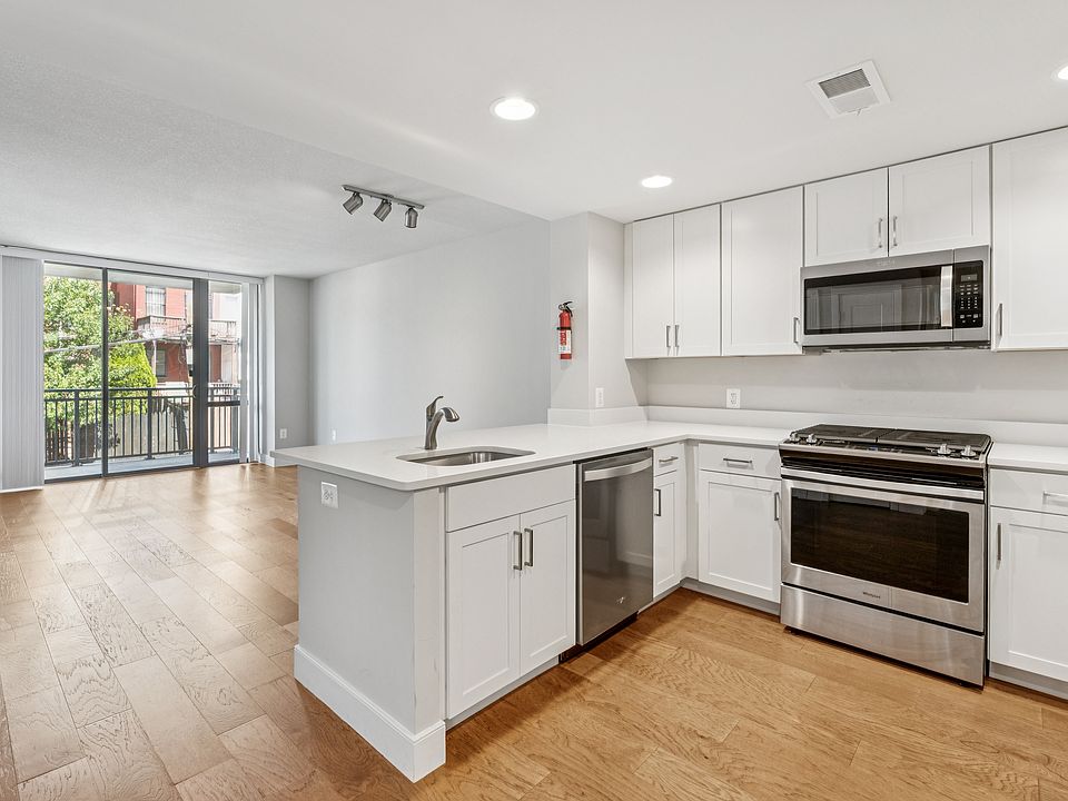 This thoughtfully designed 1BR/1BA residence features an open-concept layout and a sleek, builder-upgraded kitchen with white shaker cabinetry, quartz countertops, stainless steel appliances, and a spacious eat-in peninsula. Enjoy a dedicated dining area, a spacious living room, and a private balcony, perfect for seamless indoor-outdoor living. The generously sized bedroom features a walk-in closet with custom shelving and an ensuite bath with dual access for added convenience. Additional highlights include an in-unit washer and dryer, a large private storage unit, and one garage parking space. Residents enjoy access to premium amenities including a 24-hour concierge, fitness center, swimming pool, and clubroom. Steps from Metro, restaurants, shops, and all that NoMa has to offer.