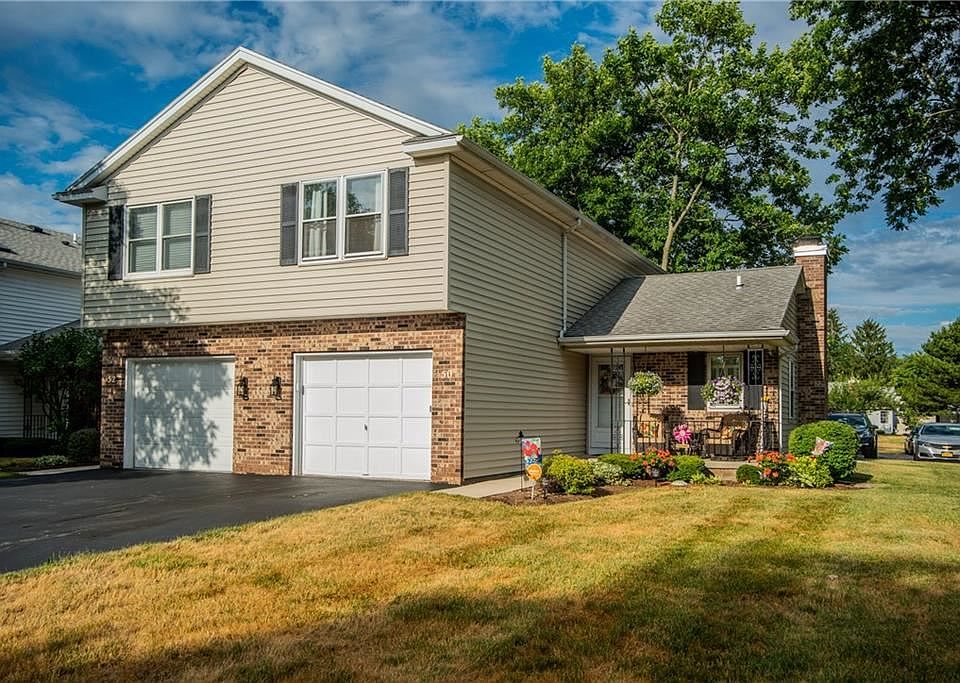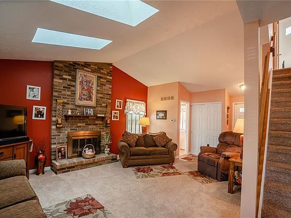 Comfort, elegant, hassle-free - Welcome to 50 Flower Dale Dr., where the only thing you'll have to do is move in. This lovely 2 bedroom townhome features a brand new Vivant Smart Home security system - installed June 2020. Parkay flooring in foyer, soaring cathedral ceilings, sky lights that provide plenty of natural light, a comforting brick-wall fireplace extending to the ceiling, custom window treatments, a unique bowed-wall dining room that leads directly out to the patio. Privacy vinyl fencing, complete with a large parking lot for your guest. This immaculate home is nestled on an end unit and close to all of your shopping and entertainment needs. Rest easy as a low $225 monthly HOA covers all exterior maintenance. Furnace & H2O Tank - 2010. All appliances stay, including an additional freezer in basement! Don't miss out on this opportunity! Schedule your showing today!
