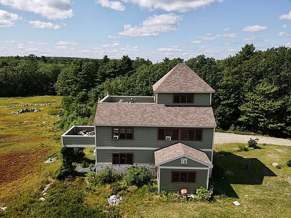 Blue Hill Peninsula house! .Gorgeous house at the end of a quiet cul-de-sac overlooking Nature's beauty, with fantastic views of Blue Hill Bay in the distance. Blueberry fields, granite outcroppings, young fruit trees, and abundant wildlife define the landscape. Decks off the second and third levels are perfect perches from where to observe it all. Serene sunsets. Ideal entertaining space for family and guests. This is a must see for anyone searching for privacy and a unique living experience. Note: 2 bedroom floor plan but square footage and septic design accommodates 3 bedrooms.