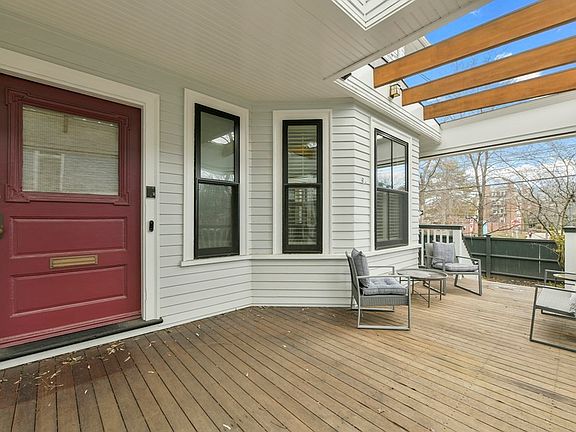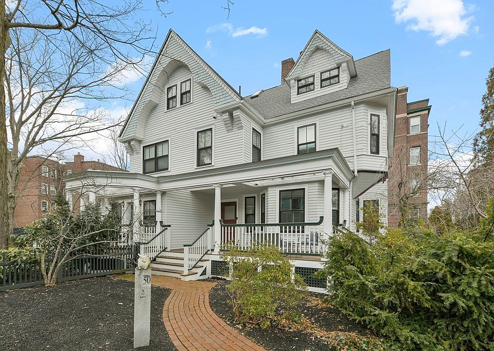 A spacious home spanning 3 levels of a finely designed property. You are greeted by a covered porch with an elegant pergola leading to the elegant foyer with a fireplace. The living room has a bay window & pocket doors to the dining room with a fireplace. The renovated kitchen boasts granite countertops, cherry cabinetry, stainless steel appliances & a gas range. Upstairs, the landing is open to below & has a custom built-in window seat with adjoining bookshelves. There are two spacious bedrooms on the second level with a hall bathroom. The top floor houses the expansive primary suite with a soaring vaulted ceiling, skylight, 2 walk-in closets, and a 4-piece en-suite bath with a double vanity and large soaking tub. The lower level offers an exercise room, laundry room with a sink, plus storage & utility spaces. Located with immediate access to the Radcliffe Quadrangle. Within a 1/2 mile radius of Harvard Square, Longy School of Music, Longfellow Park, BB&N, Huron Village & much more.