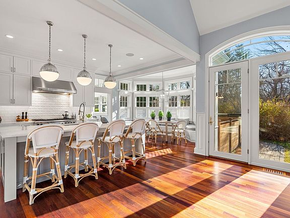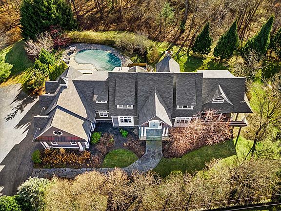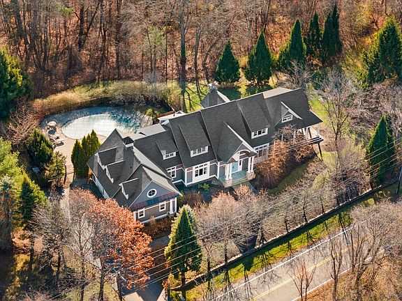 Discover an exquisite haven in the coastal town of Rye, where modern architectural elegance meets serene, expansive living. This exceptional residence, set on 5.9 acres behind a charming stone wall, features 5 bedrooms and 6 bathrooms. The fabulous floor plan extends outdoors to include an inground pool, built-in outdoor kitchen, and a stylish paver stone patio. Step inside to an open-concept kitchen, breakfast area, and living room adorned with cherry wood floors, transom windows, detailed moldings, custom built-in cabinets, and French doors that open to a private backyard oasis. The high-end kitchen boasts a center island with seating, beautiful pendant lighting, a subway tile backsplash, high end appliances, and a coveted walk-in butler's pantry. The living room is anchored by a breathtaking two-story stone wood burning. The main level impresses with a welcoming foyer, formal dining room, first-floor office, great room, screen porch, and mudroom. Upstairs, retreat to the primary bedroom suite complete with a walk-in closet, private balcony overlooking the pool, walk-in tile shower, soaking tub, & double vanities. The second bedroom offers an ensuite ¾ bath, while three additional bedrooms, a full bath, and a laundry room complete the second level. The finished lower level is an entertainment paradise with a media room, game room, and wine room. Outside, the backyard provides the perfect setting for relaxation and entertaining. This property is truly special.