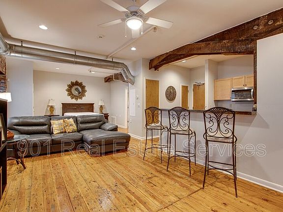 $100 credit for parking Furnished studio at the desirable Barton Flats downtown! This gorgeous unit features exposed brick walls and original beams, adding to the historic character. This condo features beautiful plank hardwood flooring, concrete counter tops, stainless steel appliances & high ceilings. Bath features huge garden style jetted tub. Pet friendly! (Cats and small dogs only.) Parking not included. The Barton Flats is a historic building located downtown near great dining establishments and features a fabulous roof top deck with grills that faces the Mighty Mississippi. Built in 1872, the building has a storied past, including being used as a wholesale grocers, plow dealer, and a cotton factors facility. Professionally managed by 901 Real Estate Services *Additional fees may apply. Please see below. Some photos may be virtually staged.* * **Avoid scams: We do not post our properties on Facebook Marketplace or Craigslist and will never ask you to pay anything through CashApp, Zelle, or Venmo.** Amenities: beautiful hardwood flooring, exposed brick walls, jetted tub, elevator, roof top terrace, central heat & air, furnished
