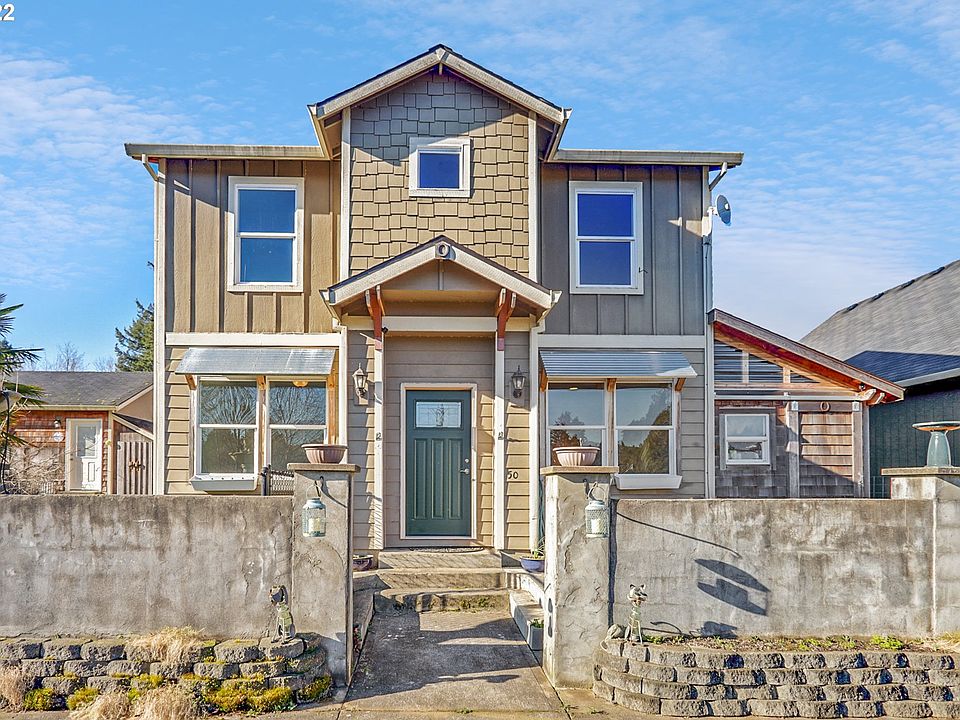 Updated Craftsman style 3 bedroom, 2.25 bath home. Newer laminate flooring. Nicely appointed kitchen with Stainless Appliances and a slider to the backyard space. Open kitchen/dining/family room space. Office is on the main floor. Upstairs you will find 2 bedrooms, full bath and the Primary Suite with private bath and walk in closet. Utility with washer and dryer is upstairs near the bedrooms. Added storage/workshop space on north end of house. The well maintained yard leads around back to a gravel patio entertaining/BBQ space with a pond and waterfall. Great entertaining outdoor space with Hot Tub. Double car finished garage and a tool shed. Convenient location close to schools, shopping and restaurants.