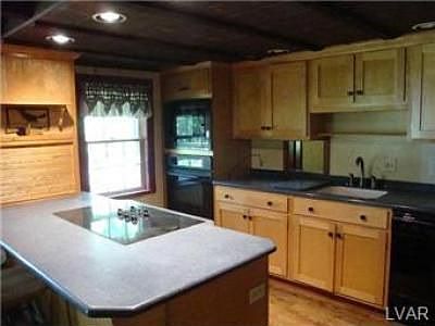 Curb appeal with old world charm. Farmhouse and Bank Barn on 1.6 acres in Longswamp Twp. Priced for quick sale, this 2,771+ Sq Ft home needs updated bathrooms, some wallpaper stripping, fresh paint. Beautifully updated modern kitchen has wood flooring, upgraded appliances, large island, corian countertops, and plenty of cabinet space. There is a huge family room with fireplace flanked by shelving. Offering 3 bedrooms, and a semi-finished 3rd Floor attic, which could be a 4th bedroom, as well as 2 full baths. 1st floor laundry hook-up. Seller is offering a 1 year warranty with acceptable offer.