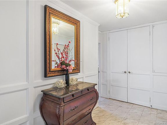 Fully renovated, spacious, & soaked in natural light, 1680 SQFT 3 bed, 3 bath condo is now available in the sought-after Soundview Towers complex. The corner unit offers views of the Stamford downtown skyline & 2 large balconies providing cross breeze & natural cooling in Spring/Fall. Beautiful marble foyer w/ coffered ceiling & majestic archway welcomes you to an open floor plan for your family to enjoy. Entry foyer leads to a large living room & dining room w/ exquisite balcony. The open kitchen has stainless steel appliances, granite countertop, backsplash, & beautiful white cabinets. The enormous master suite w/ connected walk-in closet, spacious master bath w/ upgraded shower, & private balcony offers an oasis from everyday life. The condo features 2 additional large bedrooms suites w/ connected full baths & large double closets. All 3 baths & kitchen are gracefully renovated w/ premium materials & crown molding. Finally, the unit is equipped w/ energy efficient appliances & LED lighting throughout. Conveniently located close to public transportation, Stamford Train station, & downtown Stamford restaurants, shopping, & theaters. This doorman building (with 24-hour super) provides swimming pool, fitness center w/ sauna & party hall on the top floor. Assigned parking in covered garage & secured large basement storage area. The building includes natural gas, heat, hot water & trash removal w/ well-maintained grounds. An urban/suburban lifestyle awaits you & your family!