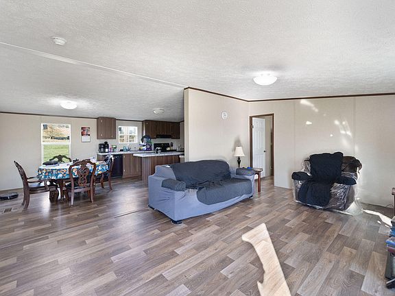 DRIVEWAY JUTS REFRESHED WITH A LOAD OF GRAVEL! Affordable and in excellent condition! Welcome to this beautifully designed 2022 model mobile home, situated on a block foundation and nestled on a generous 1.63-acre lot.
