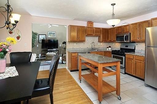 This beautiful 1995 custom built Colonial offers a wonderful open floor plan, perfect for easy living and entertaining. The living room with a bay window opens to a spacious dining area and updated cook's kitchen with granite counters, center island and rich wood cabinetry. A wonderful family room, located off the kitchen opens out to a sun-splashed deck, with views of Blue Hills and the lovely landscaped yard. Also on the first floor is a full bathroom. On the second floor offers three generous bedrooms including a spacious master and a large family bathroom with double sinks, which also has direct access to the master bedroom.The heated lower level offers wonderful bonus space, with three additional rooms and a half bathroom, with a direct walk-out to the yard. Close proximity to both Hyde Park and Roslindale Villages, shops and restaurants, the T, George Wright Golf Course and Blue Hills. This home is a pleasure to show.