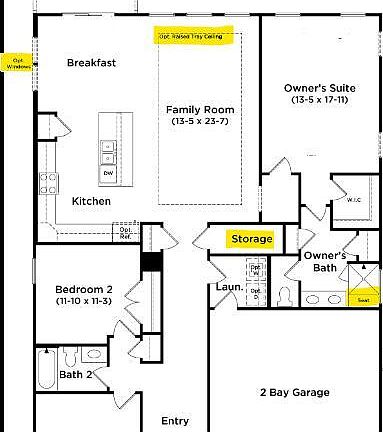 This home will have light gray siding, light brown brick, white trim/garage door, and a blue/gray front door. This ranch-style Cooper includes a covered front-entryway, covered pack porch, and tons of storage! The spare bedrooms share a full bathroom with quartz counters, upgraded cabinets, a tub-shower combo, and a linen closet. This home features an open-concept layout with a raised tray ceiling in the Family Room, additional windows in the Breakfast area, a Mudroom off the 2-car garage, a large storage closet, and all hard flooring. The Kitchen has electric appliances, granite counters, upgraded cabinets, and upgraded sink and faucet. The Owner's Ensuite has an upgraded tile shower with seat, double vanity with quartz and upgraded cabinets, a private water closet, linen closet, and walk-in closet.