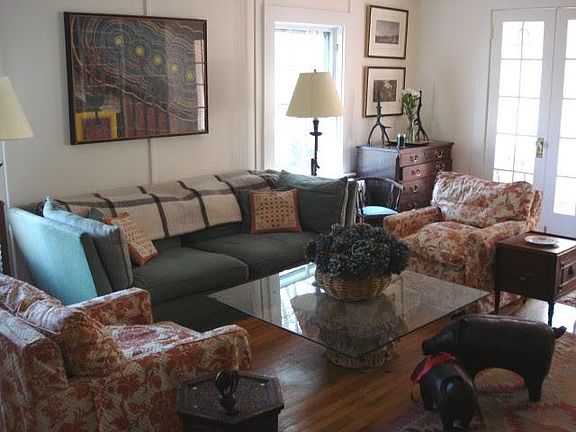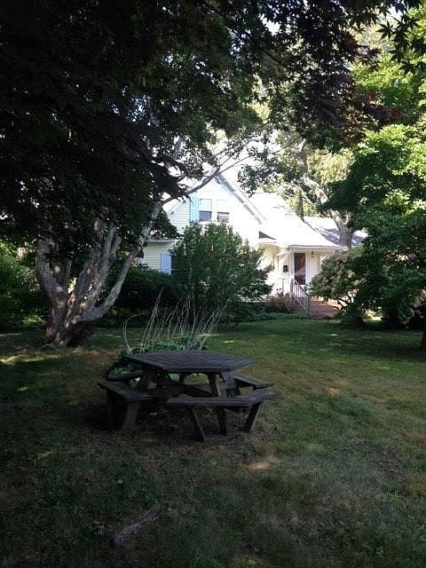 WINTER RENTAL 2019/2020: This is a very charming furnished cottage on one of the nicest streets on the island. It is surprisingly spacious with lots of different seating areas, options for eating, and rooms to gather in. The first floor has a bedroom with a queen bed, full bath, kitchen, a studio off the kitchen with lots of light, large living room with wood burning fireplace, sun porch, and an extra dining/living area between the living room and kitchen. Second floor has master bedroom with queen bed, bedroom with 2 twin beds, and a large full bathroom. Big yard. Very close proximity to the village, harbor and town beach, very desirable location. This is perfect for a military family or a family who needs short term housing while they have construction done on their own home. Available from September to June. Tenant pays electric, oil, water/sewer