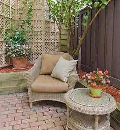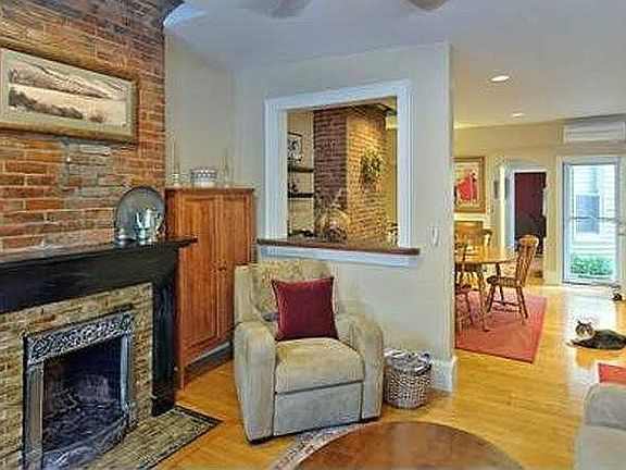 Well maintained 1st floor apartment with exposed brick, hardwood floors, fireplace and 300 sq feet totally private outdoor space.
