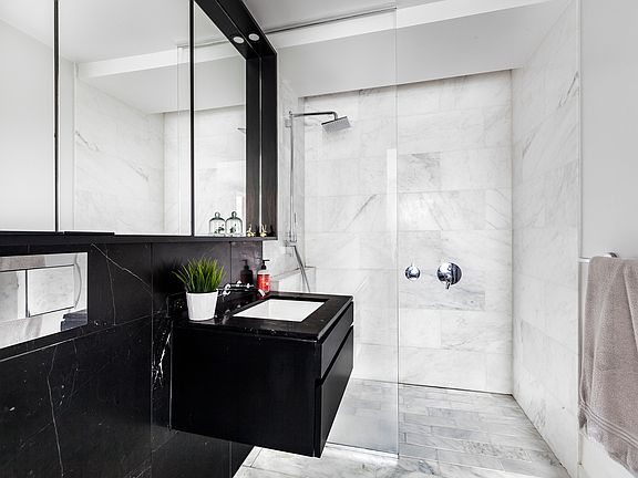 Coveted Corner 2-Bedroom withTerrace: This spacious and sunny corner two-bedroom home features an open living area, premium craftsmanship and quality finishes. Wide plank oak flooring throughout, energy-efficient windows, with a custom designed kitchen featuring precision milled oak cabinetry. The Island countertop in the kitchen is form and function; Statuary Marble with ample cabinetry below, provides a spacious work space for the chef and pleasing breakfast bar for guests. State-of-the-art appliances include a Viking cooktop and oven, an under-counter wine refrigerator. A Liebherr refrigerator, and a Bosch dishwasher. paneled to blend seamlessly with the cabinetry. The master bathroom boasts floor-to-ceiling Italian Carrara marble walls and flooring, with beautiful accents. Walk-mounted Kohler toilet, polished chrome fixtures, with a mirrored personal sundry cabinet to complete this stunning master bath. The secondary bathroom welcomes guests to an inspired mix of stone and tile, an elegant custom built vanity, adding beauty and functionality, along with innovative details like a internal shower rod and full-height mirrored sundry cabinet, fully illuminated, all complemented with Hansgrohe polished chrome hardware. An intimate 7-story building with just 44 residences, 50 Greenpoint is the perfect place to call home. The building amenities include a large attended lobby, comfortable lounge with fireplace, Kid's playroom, pet spa, bike room, fitness center, landscaped roof deck with gas BBQs, and private parking. Walking distance to East River waterfront and Greenpoint's main shopping area, 50 Greenpoint is just minutes from Manhattan and only moments from Williamsburg and Long Island City.