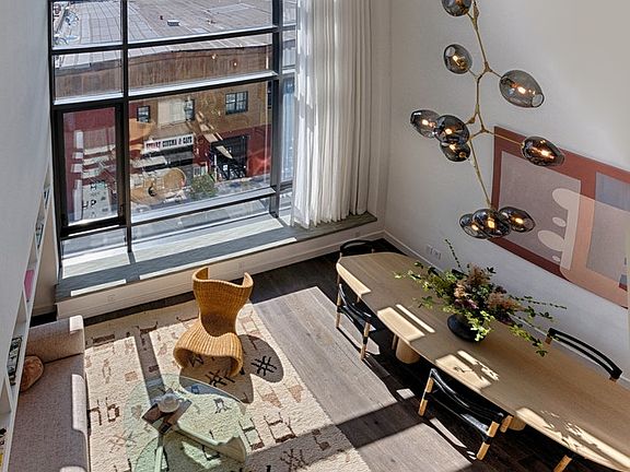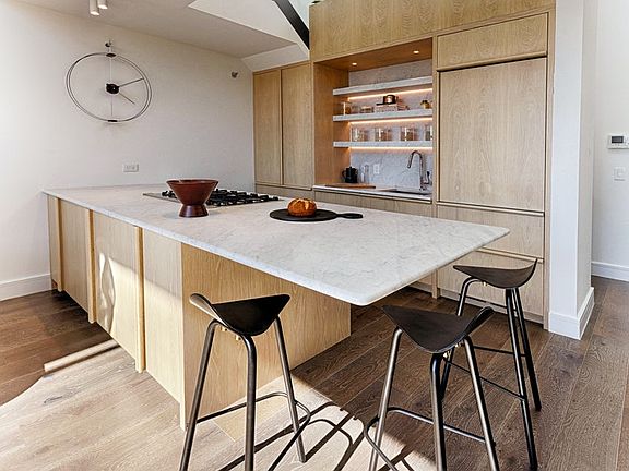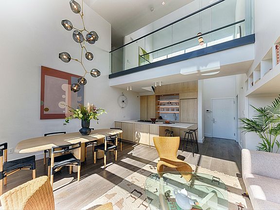 A Greenpoint Masterpiece best describes this combination duplex convertible four-bedroom jewel. Newly renovated and designed by StudiosC, this home sparkles from top to bottom with the finest of finishes and upgrades. A sprawling and magical layout that flows at almost 2100 sf of space, it all begins as you step into the lower level living room. Entering, you are struck by a dramatic double-height majestic living room that is framed by over 19' floor to ceiling windows framing breathtaking views of Manhattan and the East River. Boasting generous width and depth, the space allows for the flexibility of blissful living space and a separate communal dining area. Leaving no detail to spare, the room has customized window treatments, stylish cushioned window seating, and customized Atlas solid wood modular wall mounted shelving. The lower level also has the convenience of its own tastefully appointed powder room. Complementing the living and dining areas is a luxurious custom-designed open kitchen featuring white oak millwork with concealed pulls for a clean, minimalist look. The countertops are natural honed marble with rounded edging and the kitchen island offers spacious breakfast bar seating. Top of the line appliances include Viking and Bertazzoni, Bosch and Liebherr. There is an under-counter wine refrigerator, plus a paneled dishwasher and refrigerator. In addition, it also has custom marble shelving with integrated under-mounted LED lighting. To complete the kitchen is a speed oven and garbage disposal Ascending the stairs to the second level one appreciates the elegance of a customized continuous glass railing. Arriving at the upper-level landing and catwalk perch, you are greeted with stunning vistas of East River boat traffic and the living room below. Exploring the master bedroom, you find it is expansive and offers its own large walk-in closet. The master bathroom features floor-to-ceiling Carrara marble walls and flooring, smartly accented by a Nero Marquina marble wall with a full-height medicine cabinet for additional storage. Included are double vanities and polished chrome fixtures by Hansgrohe throughout. Exploring the rest of the home, you discover two additional upper-level bedrooms and a versatile family room that can easily be converted to a fourth bedroom. In addition, you have the bonus of a home office nook and a separate laundry room. And the secondary bathrooms have an inspired medley of stone and tile with Hansgrohe polished chrome hardware. Upgrades to the home include Lutron Caseta wireless smart home capable light switches, LED lighting throughout, and a fully waterproofed extended interior planter box ready for soil or planters, with a programmable irrigation system. Rounding out this impeccable home are brushed white oak floors, energy-efficient windows, central heating and cooling, custom closets, and an LG Signature washer and dryer. Four private indoor parking spaces are available for sale at $100,000 per space - all with dedicated electric outlets and one includes a Tesla charger! 50 Greenpoint is a full-service building that features first-class amenities including an attended lobby, resident's lounge with fireplace, children's playroom, fitness center, pet spa, landscaped roof deck, and bike storage. There is a 15-year tax abatement with 7 years remaining. The building is conveniently situated in the heart of the Greenpoint waterfront, a block from the East River and close proximity to the finest restaurants, the East River Ferry, and the G train. 50 Greenpoint is also just minutes from Williamsburg and Long Island City. Please email for an appointment. Be sure to check out the video!