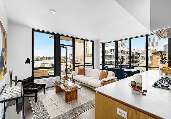 A rare find! Welcome to your sun flooded corner three-bedroom/two-bathroom condo with breathtaking Manhattan, Park and River views in the hottest neighborhood in New York - Greenpoint waterfront! Residence 5C at 50 Greenpoint Condominium is an incredible, sun-drenched, three-bedroom / two-bathroom home. This corner apartment provides breathtaking views of the Manhattan skyline, parks and the East River through floor-to-ceiling windows and from a private balcony. The C-line is the most desirable line in the building. Residence 5C was kept in pristine condition and has stunning finishes throughout. It offers a smart and open floor-plan with an elegant entry foyer, a large coat closet, laundry room with stacked washer/dryer and additional storage space. The layout opens up to a bright and expansive living area with western and northern exposures. Your stylish kitchen features milled oak cabinetry, a statuary marble island countertop, Bertazzoni cooktop and oven, a paneled Bosch dishwasher, Liebherr refrigerator and a wine cooler. It is perfectly laid out to provide an optimal entertaining space and a separate dining area that can easily accommodate a large table for 6 or 8 guests. Your large primary en-suite bedroom has ample closet space and looks out to the Manhattan skyline through oversized windows. It provides enough space for a king-sized bed and a home office. The full bathroom offers contemporary luxury with a custom vanity and an elegant shower. The second and third bedrooms are generously-sized as well, tucked away from the living room to provide privacy and quiet and both of them enjoy fantastic light and view. The second bathroom offers marble tiles, soaking-tub and additional storage. 50 Greenpoint is a full-service building that features first-class amenities including an attended lobby, resident's lounge with fireplace, children's playroom, fitness center, pet spa, fully landscaped roof deck with BBQ grills and spectacular views and bike storage. There is a tax abatement in place until 2027. The building is conveniently situated in the heart of Greenpoint's waterfront, a block from the East River and in close proximity to the finest restaurants, cafes, the East River Ferry, and the G train. 50 Greenpoint is also just minutes from North Williamsburg and Long Island City. Contact us today to schedule your visit to see this spectacular space.