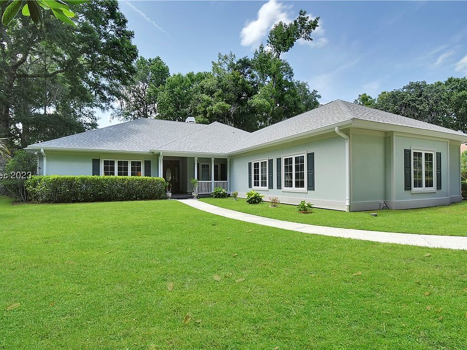 A special location greets you with a large homesite and gorgeous parks in the front and back of this home. Great floor plan featuring 4 beds plus office! 9 ft ceilings plus tray ceilings with recessed lighting in the living room. New roof and gutters in 2020. New kitchen countertops and new appliances. Smooth ceilings. All new hard coat stucco replaced two years ago. Fireplace. Front porch and large private deck in the back overlooking park and lagoon. Lots of closets! Large laundry room. Oversized 2-car garage w/workshop area. Walk up attic over garage. Amenities incl. 3 pools, tennis, golf, pickle ball, and deep water river access.