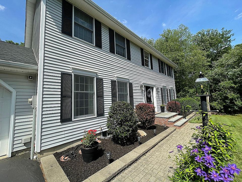 Beautiful country setting home on almost 3 private acres. New roof and mechanicals. Semi inground pool with natural local bluestone which extends to a fire pit. Two shed with one set up as a chicken coop. Designer kitchen attached to a three season sunroom fireplace in the family room. Home has mostly new flooring throughout. Currently set with two home offices. Basement is finished with a wood stove, pool table and a walk out door.