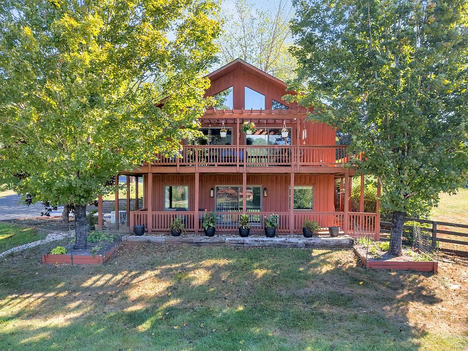 Welcome to your private oasis of tranquility! This remarkable property overlooks a serene lake with views that will leave you breathless. A meandering paved driveway leads to this cozy home, which offers everything you desire, including a primary bedroom, conveniently located on the main level, with an en-suite bath behind the beautiful barn doors. The vaulted ceiling living room is stunning with magnificent views, thanks to floor-to-ceiling windows that bathe the space in sunlight, and a stone fireplace that adds warmth and charm. The kitchen is a chef's dream, boasting granite countertops, white cabinets, and stainless steel appliances. Additional living space awaits you in the basement, complete with a spacious rec-room and an extra bedroom with its own full bath. The wrap-around deck invites you to enjoy the outdoors in style while taking in the impeccably maintained property. Whole House Generator included. Hardwood floors throughout and recent paint updates add to the charm. Don't miss the opportunity to make this peaceful retreat yours! 15 min to Wintergreen and 30 min from Charlottesville amidst the 151 winery and brewery scene. Open Sunday 9/24, 2-4pm.