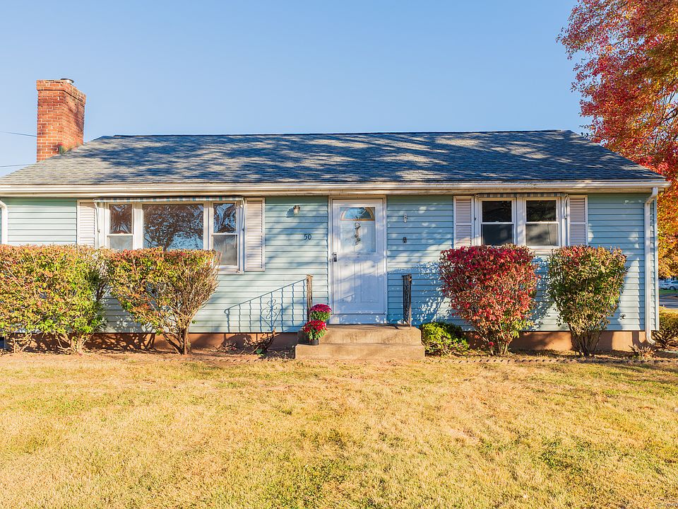 Welcome to this beautifully maintained one-story ranch! This home features three bedrooms and 1 full bath. Walk in and immediately notice the spacious living room. The large living room, with its south-facing picture window, fills the space with natural light. There is also a wood-burning fireplace with a classic wooden mantel as the focal point of the room, and beautiful hardwood floors that carry throughout the home. The eat-in kitchen boasts plenty of cabinets and counter space, ideal for all your cooking needs. The three bedrooms are generously sized and offer great closet space. The main full bath includes a spacious walk-in shower, offering convenience. Plus, the expansive basement has potential for additional living space. Step outside to a large paver patio, perfect for entertaining, and a sizable shed for all your storage needs. Enjoy gas heating and central air. This home is conveniently located near local amenities, schools, and parks. A must-see!