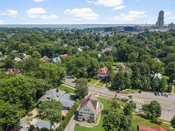 Seeking space away from the city? Move right in to this Rochelle Heights 4,391 sq ft, 5 bedrm., 4.5 bath Victorian gem on 0.58 lush acres. You will love the high ceilings, wrap-around porch & the rear stone patio patio which offers great privacy. The architectural details throughout are sure to enchant including coffered ceilings, dentil molding, & pocket doors! Three fireplaces, an eat-in chefs kitchen featuring dark granite counters & white cabinetry, a Formal Dining room, PR, Parlor room, Mudroom & foyer all on the 1st floor. Grand Master Bedroom suite, Dressing room, Spa-like bathroom, & a wall of custom Elfa closets, 3 addit. bedrooms/& or library/sitting rm (2 w custom built-ins) & a beautiful bathroom grace the 2nd flr. The 3rd flr. offers a modern bathroom, 2 bedrms, & family rm., 2 large storage rms. Legalized basement w/a utility area, Laundry rm, full bath, 2nd refrig. & gym! CAC on the 1st. floor & lower level plus a partially heated driveway. 30 mins from NYC & Stamford!