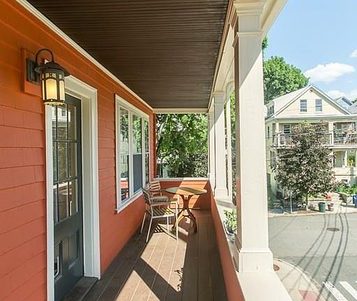 Bright, beautifully renovated 2-level unit w/3+ beds, 2 baths, 2 private porches and backyard, exclusive 2-car garage, C/A. Private front door leads up the stairs into a hallway w/sunroom to the right w/door to private front porch; LR and DR w/bay windows and original wood fl straight ahead; full, tiled bath and bedroom to the left. Open to the DR is the designer kitchen with pro gas stove, 2- drawer dw, granite counters, pendant lights, tile backsplash, breakfast bar, vent hood, ample cabinetry. Second bedroom is behind the kitchen w/connecting door to the first one. Third floor has an open study area; a bank of closets and laundry opposite a luxurious tiled marble bathroom with walk-in shower; and a lovely master bedroom w/walk-in closet. Private storage area and darkroom in basement. Common front yard in addition to private backyard. Nr Red Line subway; buses; Davis & Teele Sq. restaurants, shops, nightlife; bike path; Tufts, Harvard, and MIT; highways; Logan & Hanscom airports.