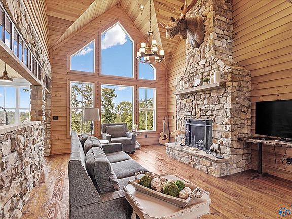 One of a kind home in amazing location! 15 minutes from Redstone Arsenal, this custom rustic home sits on 36 private acres with gated entry, 180° Bluff views, waterfalls, pond, 2 wetlands, atv trails, open pasture, 16x32 inground salt water pool 5' deep w/heater, outdoor fire pit, extensive hardscaping, outdoor shower. Custom floors,vaulted ceilings, Walk out basement w/ garage access, concrete poured walls/ storm shelter in basement, security cameras, wood burning fireplace, surround sound, spray foam insulation, tankless water heater, RV storage w/ 50A electric (2) Balcony, Tons of wildlife, incredible sunsets! There is so much to list, you will have to see for yourself!