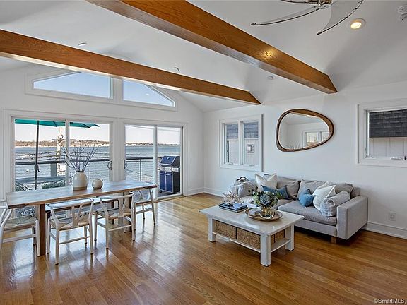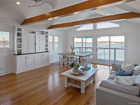 Sophisticated & contemporary 2016 rebuild will make you feel as if you are on vacation every day! Enjoy coming home to unobstructed waterfront views in Westports coveted Saugatuck Shores. Breathtaking sunrises & sunsets right off your living room & deck complete this picturesque setting. This beautiful 3-bedroom, 2 full bath beach house was fully rebuilt in 2016 w/energy efficient features throughout and is pre-wired for full house & exterior audio system. Upper level features an open floor plan drenched in sunlight w/vaulted ceilings and exposed beams. You will fall in love cooking in the spacious kitchen equipped w/Bosch ss appliances & induction range/oven. Step outside to a spacious deck overlooking Saugatuck Harbor while enjoying waterfront views. Upper level also includes a small office/den off of the kitchen. The master bedroom w/walk-in closet is located on the main floor, along with a mudroom w/built-ins, laundry & two sizable additional bedrooms. Both bathrooms & mudroom have radiant heated floors. Lower level features a vast ground level basement/garage that has room for 4 cars plus storage & can be finished into an indoor-outdoor living space (proposed plans available). Enjoy taking a bike ride in waterfront community, walk to your private beach just steps away or slip your kayak or paddleboard into the protected waters right outside your front door. Boat mooring available through the town of Westport. Conveniently located to town, train, shopping and more!