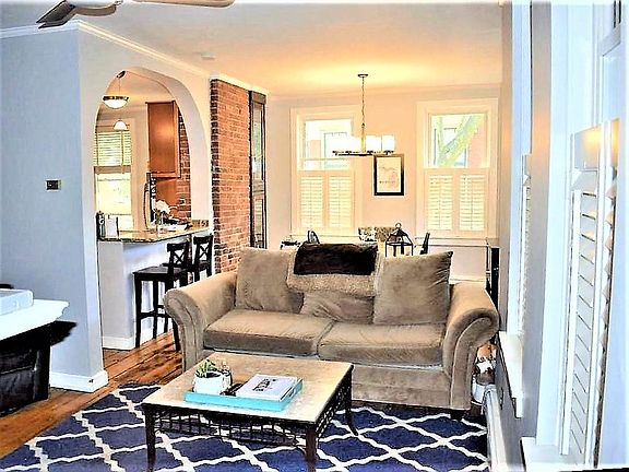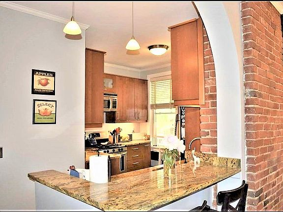 A TWO BEDROOM APARTMENT WITH A ROOF DECK, loaded with detail and history in ideal CHARLESTOWN location. The property offers an Open Layout with authentic, wide pine hardwoods throughout, Newly updated Kitchen with custom cabinetry, stainless appliances, Breakfast bar and Gas Cooking. The living/dining space has 5 windows covering 2 exposures, exposed brick and a fireplace. Original civil war era built in lockers/china cabinets compliment the historical brownstone unit. Enjoy the Incredible views from the common roof deck up the back stairs from kitchen. A dedicated laundry and large storage area in basement, incredible, prime location with an easy commute and access to the highways make this property a Rare Find for all qualified tenants. ONLY first months rent and security deposit due at signing. FREE STAY UNTIL OCTOBER 1ST and NO BROKER FEE Only First Mo. rent and security deposit at signing