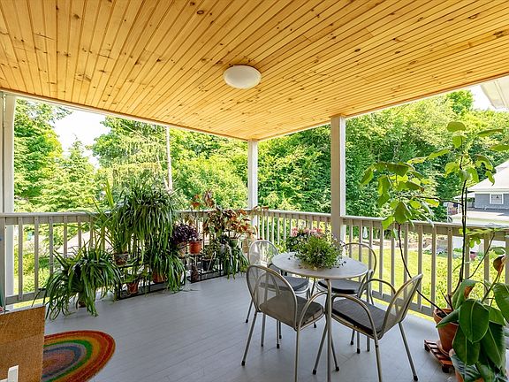 Downtown condo blending the grandeur & elegance of the home’s origins with updates and amenities galore. Original details include hardwood floors, high ceilings, solid doors, and substantial trim and woodwork. Filled with natural light and overlooking the gardens, this top-floor corner-unit features spacious kitchen with tile floors, maple cabinetry, and pantry, flowing into the open living room/dining room with original fireplace façade and electric woodstove insert. Down the hall are two bedrooms, both with walk-in closets, and updated full bath with soaking tub and glass shower. Less than a block to town and a stone’s throw to walking trails and the bike path, this ideally located condo is made all the rarer with each unit having its own garden area, as well as covered parking. The extras continue with new heat pump for efficient central air and heat, abundant closet space, plus extra storage in basement, in-unit laundry, and recently added 12x12 private deck.