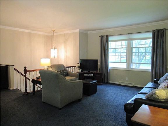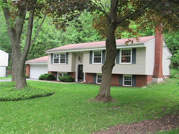 Nearly an acre of land in Penfield complete with 17x34 in-ground gunite pool (automatic chlorinator & 4 yr old filter) and deck overlooking private, wooded lot. Inside you'll find 3 full baths with a 4th bedroom providing ample space for teen, guest, or office space; replacement windows throughout; hardwood flooring underneath much of the carpeted area; linen closet with additional closet systems in several of the bedroom closets; wood-burning FP; all appliances included. SO much value - come take a look today!