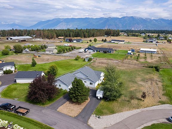 Enjoy single-level living in a beautiful country setting with stunning mountain views on a quiet cul-de-sac. Quality construction by a local builder, barrier-free, comfortable single level home on 1.0 acre lot. Interior of home features an open floor plan w/vaulted ceiling, central air-conditioning, wonderful natural light from windows galore, natural gas fireplace, wide hallways/doorways for wheelchair access, master suite w/walk-in closet, 2 spacious guest bedrooms, 2 full bathrooms, large bonus room w/separate entrance (could be home office/home gym/den/hobby room or 4th bedroom) plus extra storage throughout home. Designed with relaxation and low-maintenance in mind. An extra long (26X30) 2-stall attached garage offers plenty of room for additional storage or work area. Convenient location with quick connectivity to North Kalispell Shopping Hub, Medical Arts Campus, Airport, Downtown Kalispell. Call Shelby (406) 253-0222 or Mike (406) 871-0673 or your real estate professional.