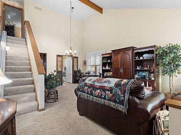 Discover the joys of low-maintenance living in this end-unit townhome, where updates & practicality coexist. The living area welcomes you with a soaring vaulted ceiling & 3-yr-old windows, creating an open & inviting atmosphere. The galley kitchen features white cabinetry & appliances, quartz countertops, tile flooring & a spacious pantry. Relax or entertain in the family room, complemented by a sliding door that leads to your private patio with pergola—an ideal outdoor retreat. A full bath is tucked away in the corner, delivering the option of a main level bedroom. A laundry/utility room is conveniently placed between family room & main level garage. The Trane heat pump & hot water tank are 4 yrs young. The 2nd floor includes 2 bedrooms with generous closets, a full bath, hall linen closet & a walk-out storage room over the garage. The roof is vintage 2017.