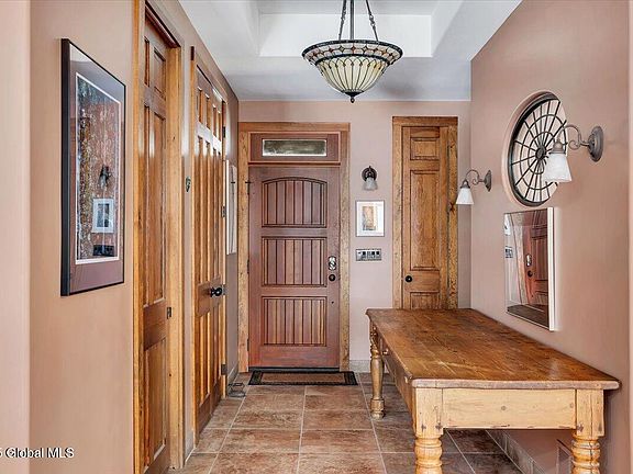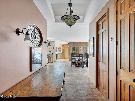 Rare opportunity to own this thoughtfully-built ranch on nearly 2 acres in a walkable Delmar neighborhood! With over 3,000 sqft of finished living space, including a stunning walk-out basement, this 2004 home blends elegance, efficiency, and comfort. The sunlit kitchen features custom wood cabinetry, granite counters, hot/cold water filter & a large island, and flows seamlessly into the spacious great room with gas fireplace, built-ins, and generous dining area. Step outside to a covered porch, lush gardens, and a private patio with grill gas line—ideal for relaxing or entertaining. Enjoy modern efficiency with owned solar panels, a brand-new boiler for radiant heat throughout, LED lighting, central air, wired generator, and public utilities.
