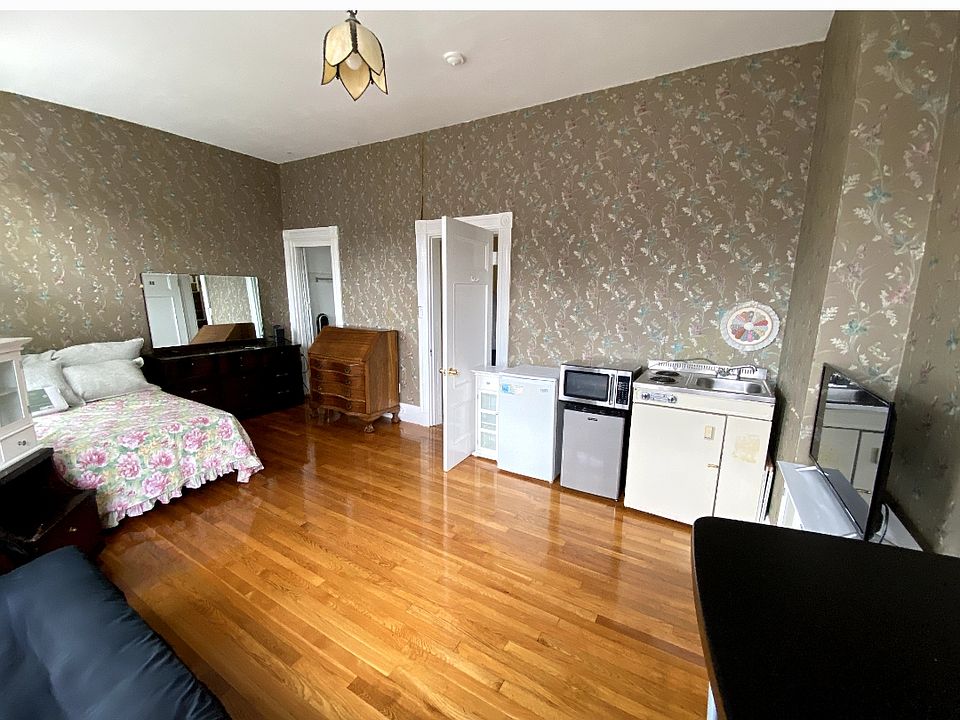 Private room FURNISHED. Sunny, huge windows.. View of Burridge House, Hereford street and the park. 3rd floor, bath shared by one indivisual who has been in residence for 4 years. Very large comfortable furnished Room. All utilityes heat hot water included. Best location owner occupied building. NO PETS / NO SMOKERS Owner pays all utilities no pets no smokers. No visiting pets no visiting smokers