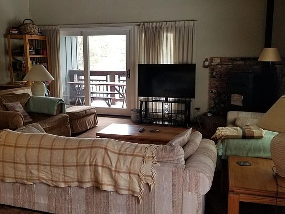3BR/3BA just below the village. South facing, sunny w/balcony. Washer/dryer in unit. New pellet stove in living room. Parking: 1 spot plus shared guest spots. Complex has spa/sauna. No Pets 6 mos or 1 year lease preferred. Partially furnished. Was rented to a group of mountain employees for the winter, but they had to leave early, for obvious reasons! Just need to get it professionally cleaned and it's ready to go. I had started a partial remodel last summer, so the two downstairs bedrooms now have additional sound proofing, new wall heaters, and new carpet. New pellet stove installed upstairs as well. I had planned on continuing to fix the place up this summer, but that's not happening at this point. I'm flexible on terms but a 6 mo lease is preferred. One of the previous tenants would potentially be interested in sharing, if anyone is open that. Owner pays for HOA dues, which include trash, water, and common area amenities, including spa and sauna.