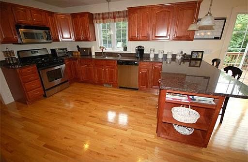 Beautiful home with plenty of space...Front to Back Family Room with Gas Fireplace and Cathedral Ceiling. Hardwood Kitchen with Granite Countertops, Stainless Appliances and Cherry Cabinets. 4 Spacious Bedrooms Master with Vaulted Ceiling, Walk In Closet and Double Vanity Bathroom with Tile Shower and Spa Tub. Basement is Walk Out to Beautiful Patio great for Entertaining/Relaxing, Flat Tree Lined Back Yard with Shed and Play Area. Basement ready to Finish for Additional Space. Great Location for Commuters just a few miles to T Station and RT 495.