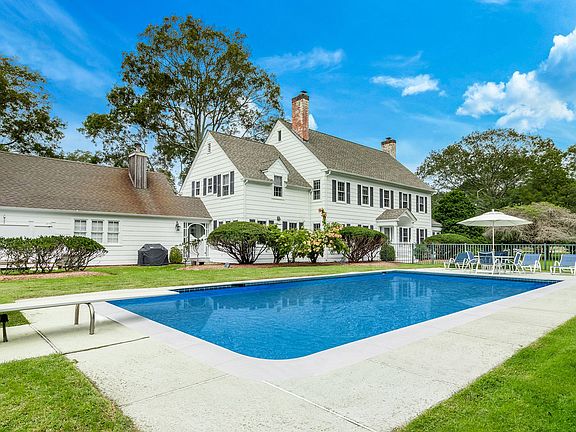 Down a private road, sits this renovated traditional home with 6 bedrooms and 4.5 baths on 2.1 acres with beautiful bay views and an expansive lawn. The cozy eat-in-kitchen has a breakfast nook, large island, and a butler's pantry. A formal dining room, living room with fireplace, den, powder room, and large screened porch complete the first floor. The second floor offers a large Master Suite, two en suite bedrooms, and three additional bedrooms and bath. A heated gunite pool, outdoor shower, and three car garage make this very private home the perfect summer retreat. Conveniently located 2.5 miles to the highly acclaimed oceanfront Rogers Beach and 1.4 miles to the shops and restaurants of the Village of Westhampton Beach.
