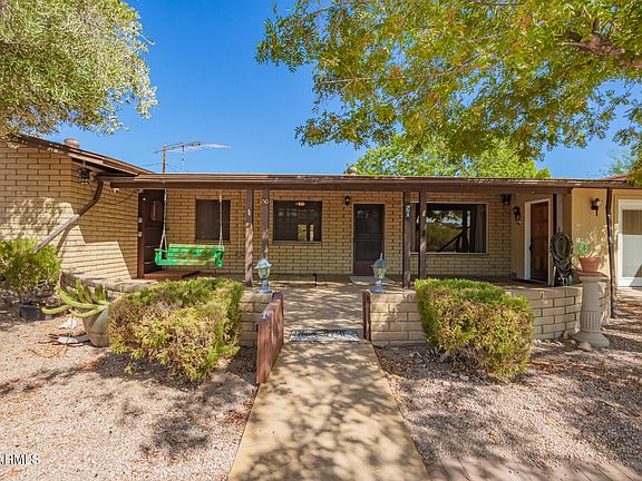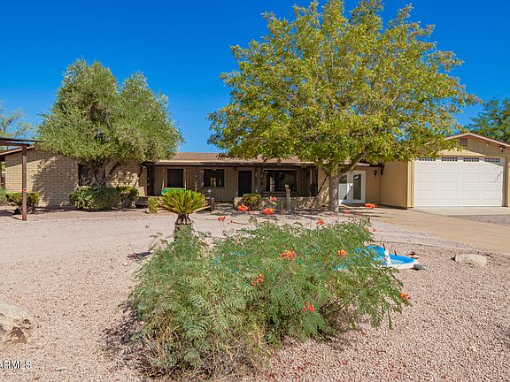 Just minutes from historic downtown Wickenburg in a quiet cul-de-sac, this spacious home features 2 master suites and sits on one of the largest lots in the neighborhood with beautiful mature trees. Highlights include a workshop/garage, separate game or hobby room, walk-in butler's pantry, and a large laundry room with ample storage. The climate-controlled Arizona room even offers potential for a 3rd bedroom. Cat lovers will appreciate the custom catio with an elevated breezeway to a dedicated cat house. Outside you will find even more storage and plenty of space in the backyard, perfect for entertaining, complete with a putting green & pool. You can even enjoy the famous Arizona sunsets and mountain views from the front porch. Ready for your personal touch, this home is truly a must see!