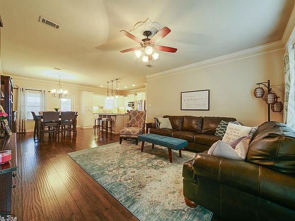 Must see! This house is in pristine condition! Open floor plan w/crown molding throughout,granite counters, tumbled stone back splash,kitchen pantry, big island, under cabinet lighting, GE appliances in kitchen,wood laminate throughout kitchen, living area and master bedroom. Carpet in other three bdrms,and ceramic tile in all wet areas. Master has luxurious bath,double sinks,large walk-in closet w/built in shelving. Large covered patio in back with landscaping to help with privacy. In Cabot School Dist.