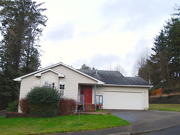 Charming contemporary home on a quiet cul-de-sac located on Astoria's sunny south slope. Freshly painted interior with some new flooring. This single level home has 3 bedrooms, 2 baths, and a private exit to the backyard from the Master bedroom. Tiered gardens and extra large corner lot, large 2 car attached garage.