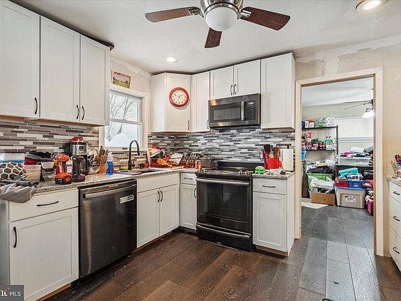 Your new home in Levittown awaits! This desirable Ranch style home offers 1-level living to its next owner with 3 bedrooms and 2 bathrooms. Upon entering, you'll find an open living/dining area offering options for laying out the space - plus it's partially open to the renovated kitchen which features plentiful white shaker cabinetry, tiled backsplash, ceiling fan, and granite counters. Down the hall, you'll find 3 bedrooms with ceiling fans and 2 full bathrooms. The first bathroom features double entry, providing hall access along with direct access for 1 of the bedrooms. The second bathroom is ensuite to a large bedroom. There's also the utility room and separate laundry room. A spacious covered patio leads to the fenced yard - a great backyard space to entertain family and friends! There's also a small garage and storage shed. Additional features of the home include vinyl flooring throughout, recessed lighting, built-in wall A/C units, pull-down stairs to an attic, driveway parking, and plentiful windows throughout make the home bright with natural light. If you're home shopping in Levittown, be sure to put this one on the list!