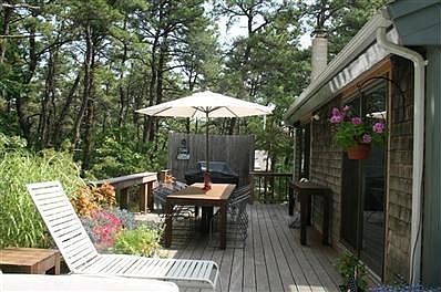 Absolutely fantastic house! Privately situated on a dead end lane just 1/2 a mile from Wellfleet center and bay beaches. Contemporary style home offers efficient year round living combined with comfort, style and beautiful finishes. Custom designed kitchen with granite counters, stone tiled baths, open cathedral living & dining spaces with pine flooring, built ins & fireplace insert with blower. Just completed gorgeous living space in the walkout basement with stone patio, new bath, living & sleeping area plus pantry style storage, a/c & amazing laundry room! The outdoor spaces are wonderful with flowering gardens, grasses & trees surround the house, newly expanded ipe wood deck, oversized ( 4 x 8) outdoor shower & privacy from the neighbors! 1st flr master w/office, new windows, solar hot water, new furnace, new custom shed & more!