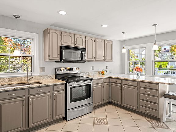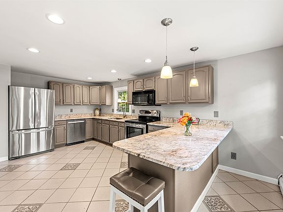 The offer deadline is Monday, October 14th, at 10AM! Welcome to your perfect starter home in the highly sought-after North End of Manchester, NH! This move-in-ready split-level home is designed for modern living with numerous upgrades. The open-concept main level features a light-filled living room with a bay window and pellet stove, and a renovated, large eat-in kitchen with a breakfast bar that leads easily to a spacious deck. Hardwood floors run throughout. The home includes 3 bedrooms and 1½ baths. The walk-out lower level offers a large finished area, ideal for a home office or second family room, with an additional pellet stove. Two full-size windows and a sliding door open to the expansive, leveled backyard. Upgrades over the years include a new kitchen, new boiler, new hot water tank, recessed lighting, a deck with an electronic awning, and a patio. The fenced backyard includes a deck, and there’s also a 2-car HEATED garage and paved driveway on a generous 0.3-acre lot. Situated on a desirable corner lot with public water and sewer, this home is conveniently located close to Derryfield School, SNHU, Livingston Park, Stark Park, downtown restaurants, and offers easy highway access. Don’t miss the chance to make this beautiful home yours!