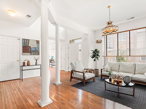 End Unit townhome with great light, high ceilings, and peaceful living. Home features private driveway and attached garage. When you enter the home you will be struck by the spacious foyer where the formal dining area flows into the living room. Perhaps you will spend most of your time in the open concept eat-in-kitchen because of the light that teams in to fill every corner of this space. The second floor offers wide hallways, generous bedroom sizes and a master bath that doubles as a personal spa. Larger, open, unfinished basement offers lots of possibilities. Central Air and 2nd floor washer/dryer. Park and tennis courts steps from this home. 2000 sf. Tenant pays for all utilities. Available 1/1/25. 6 month lease or longer. 1.5 month's rent as security deposit.