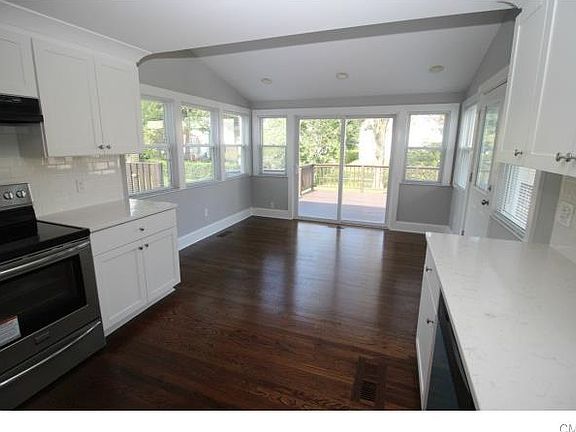 Completely remodeled & ready for immediate occupancy. Freshly painted in contemporary colors, refinished hdwd floors on 1st and 2nd floor & new light fixtures throughout. Gorgeous kitchen with white shaker cabinetry, quartz counter tops, brand new ss appliances & huge eating area with a vaulted ceiling & recessed lights & sliders out to large deck and oversized level lot. In addition the roof, vinyl siding, vinyl windows, and heating and cooling are all newer. Both full bathrooms are very tastefully remodeled. The lower level has a spacious finished playroom with it's own zone for heating & cooling & new carpeting and recessed lights. To top it all off, there is a 2 car garage with it's own electrical panel and central air!!!