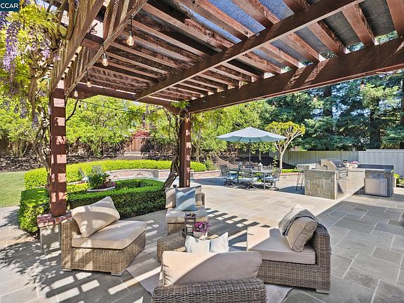 Beautiful and charming single-story ranch home located on a generous .40 acre level lot. Situated on a court in the highly desirable Whitegate neighborhood, this 4 bed/2.5 bath home has hardwood flooring throughout, a spacious primary suite, and an open concept kitchen/family room opening to the lovely and private backyard. The family room has a volume wood beam ceiling offering pretty natural light. The front yard has been recently updated with a drought tolerant design, while the backyard has an expansive lawn with a large flagstone patio, outdoor kitchen, Wisteria covered pergola, and heated spa pool with waterfalls. There is also a large side yard which offers many options to accommodate your custom needs/wants. Enjoy many nearby walking trails and Oak Hill park. Minutes to Highway 680/24, downtown Alamo, and all levels of award-winning schools. School bus for elementary and middle school. Close proximity to Walnut Creek and BART. Open Sat/Sun 4/27 and 4/28 from 1-4.