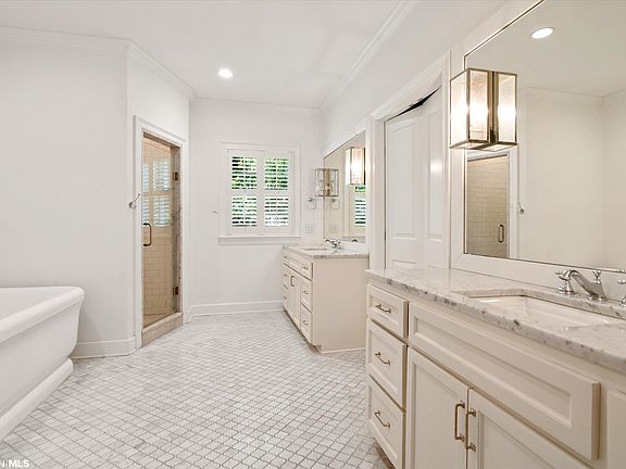 Wonderful 4 bedroom, 4-1/2 bath home in Mobile Country Club Estates. You will love the graciously sized rooms, tall ceilings, beautiful hardwood floors, and the open kitchen. As you enter the foyer you will immediately be delighted with the spacious living room with a gas starter fireplace, and a dining room you can entertain family and friends. The bright open kitchen has a farm sink, double ovens, 6 burner gas stovetop, large island and oversized pantry is opened to an informal dining and seating area which leads out to an incredible covered patio with a large screen TV for Football Parties this Fall. The Master bedroom with incredible en-suite has large walk-in closets with built-in shelves. There is nice sized laundry room adjacent to the mudroom with cubbies. The two car carport has an attached air-conditioned storage room or could be an office. Whole house generator and sprinkler system. Make you appointment today to see all this home has to offer. All updates per the seller. Listing company makes no representation as to accuracy of square footage; buyer to verify.