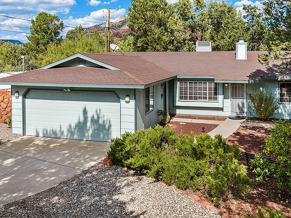 split bedroom floor plan offers a beautiful wood sliding door to guest bedroom, new tile in guest bathroom, and bay window in kitchen to capture the red rock views. Gather around your warm and inviting fireplace in livingroom where memories are made. Enjoy your outdoor living space sitting back and relaxing on your outdoor patio capturing the red rock views in the privacy of your fenced yard. No HOA. Short term rentals allowed. Buyer to verify. 2 Sheds Whether you're seeking a personal residence, 2nd home or a lucrative short-term rental opportunity, this home is your gateway to the Sedona lifestyle.
