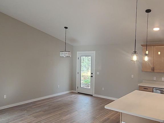 Discover the epitome of modern living in new construction! This generous 1425 sq ft residence boasts an attached 2 car garage w/ reclaimed asphalt driveway, enhancing both aesthetics and sustainability. Open concept living w/ in-floor heat and a vaulted ceiling that feels luxurious. Kitchen with soft close cabinets, Corian countertops, and SS appliances. Tiled tub surrounds. Life proof flooring.Construction complete this October.